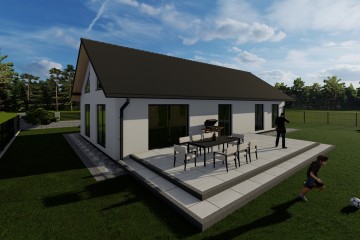 Starannie zaplanowany układ pomieszczeń gwarantuje funkcjonalność, wygodę oraz swobodną przestrzeń do codziennego życia. Dzięki możliwości bezpośredniego wyjścia na ogród ze wszystkich pokoi – projekt Tymek jest idealnym rozwiązaniem dla osób ceniących kontakt z naturą.