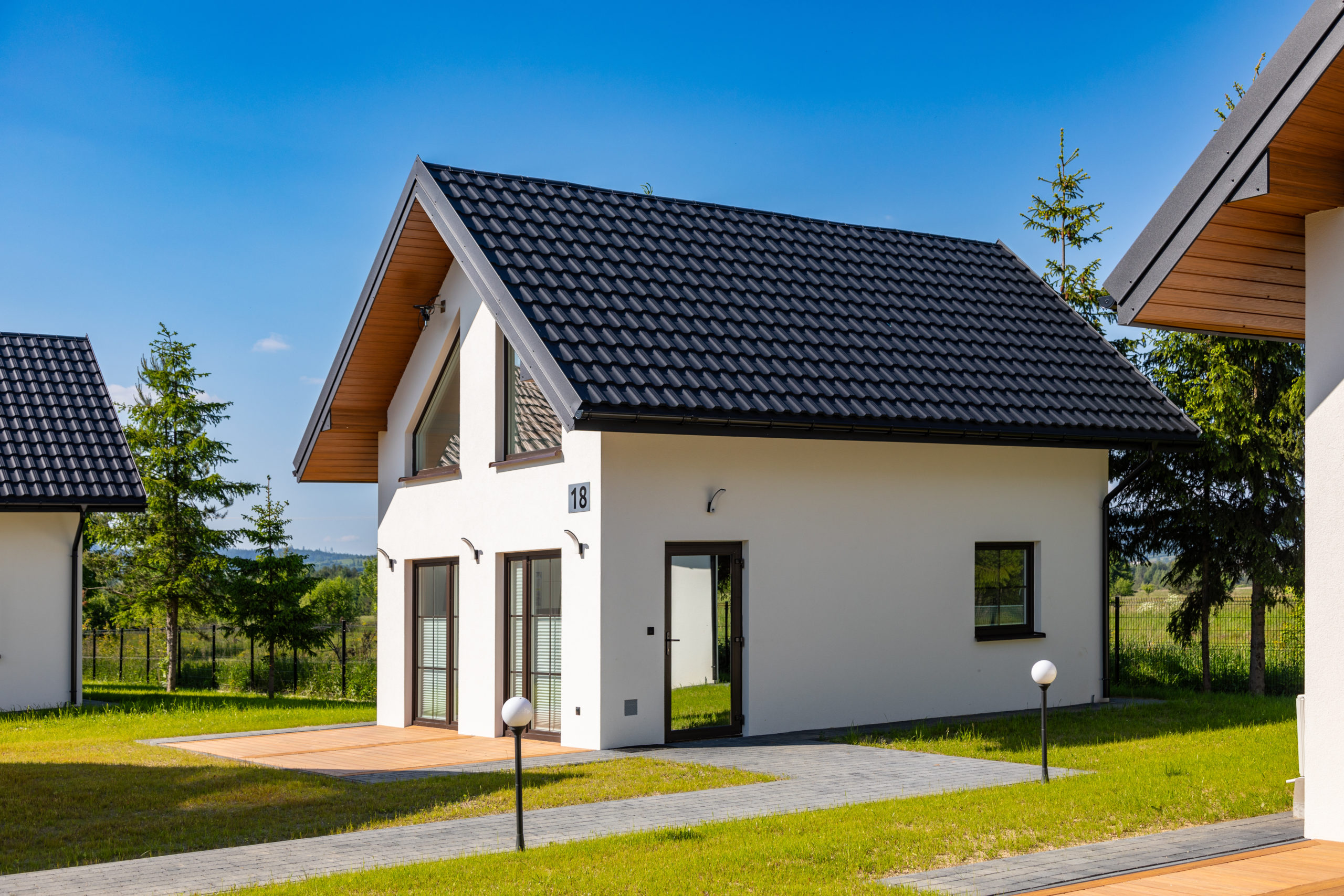 Całoroczny dom, wykonany jest systemem szkieletowym w konstrukcji drewnianej.