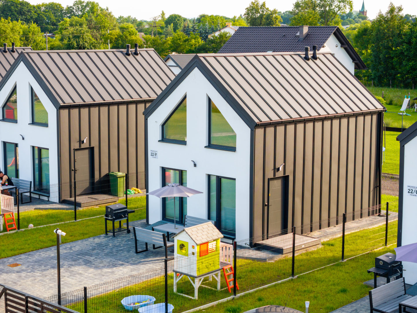 – Pokrycie dachowe blachą o profilu rąbkowym lub blachodachówka (przy wersji z okapem)