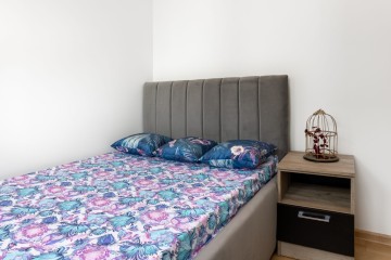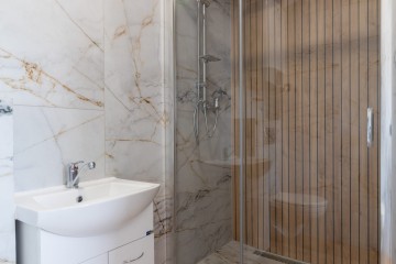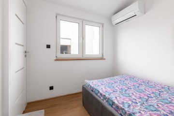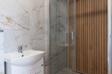 - W pełni wyposażona łazienka (umywalka, lustro, toaleta, kabina prysznicowa, terma